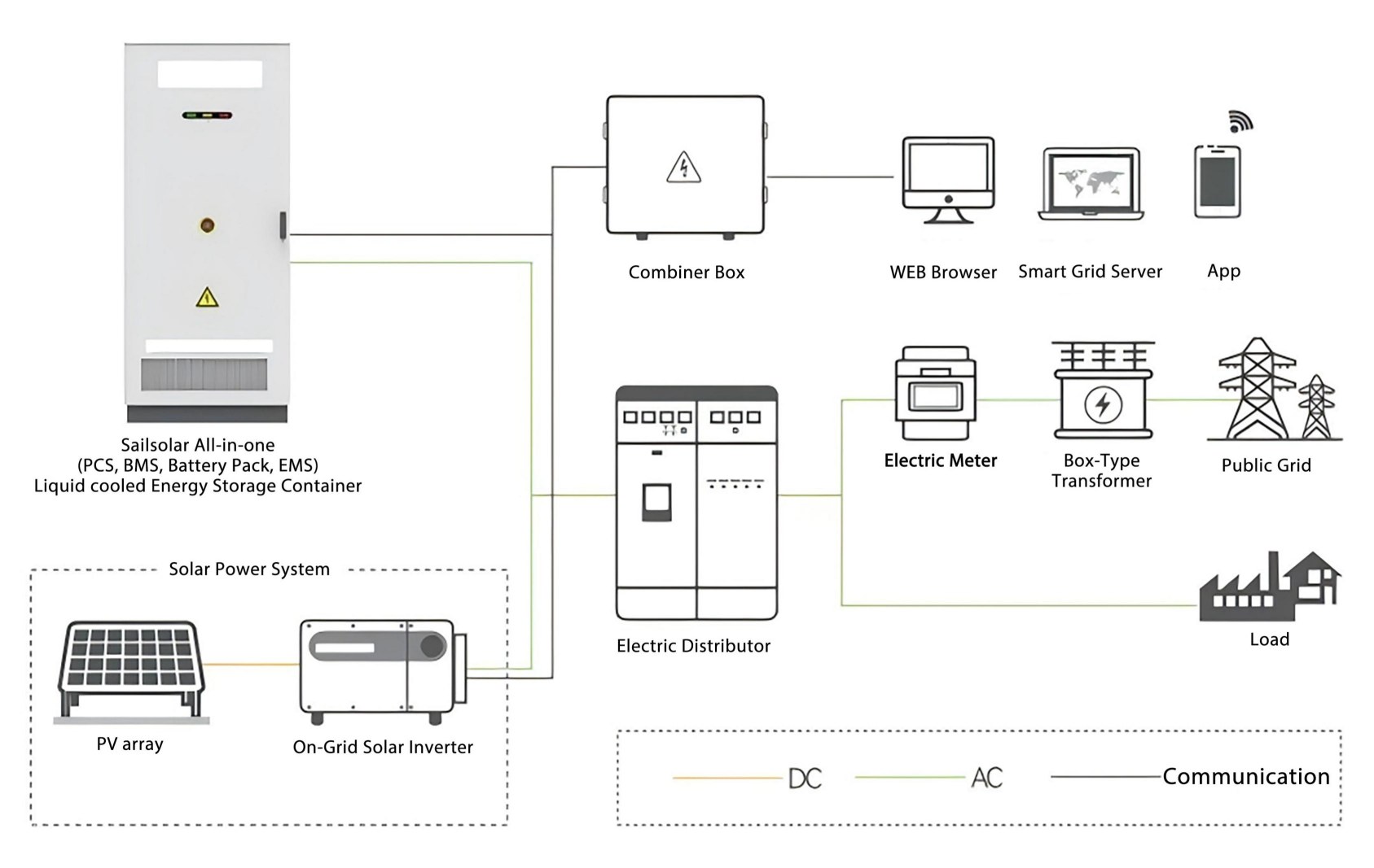 DC Coupling: Can support a 4MWp PV array. If the PV array generates 4MW of power, 2MW can flow directly to the battery for charging via the DC bus (a DC-DC process).